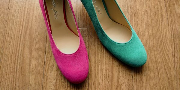 スエードの鮮やかなピンクとグリーンです。