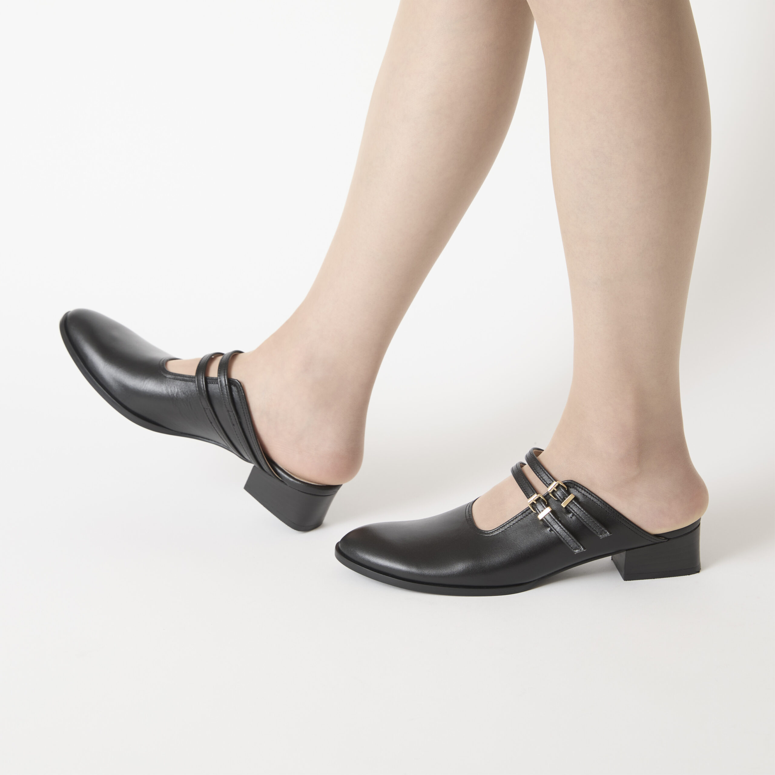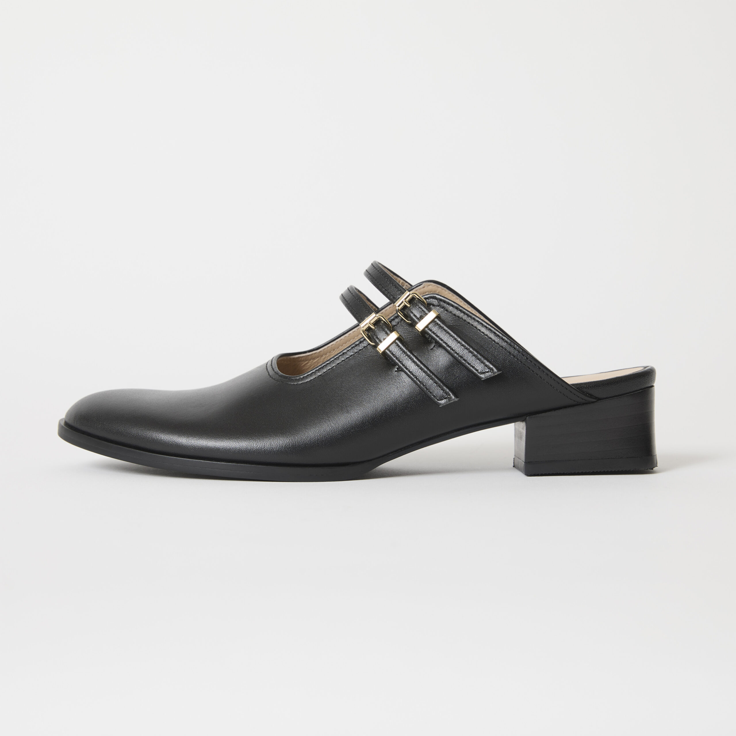 足を深く包み、安定感抜群の3㎝ヒールミュールです。関節に負担をかけないカッティングと2本のベルトでしっかりホールドしつつ、甲に抜けがあり、タイツや靴下のコーデも楽しめます。