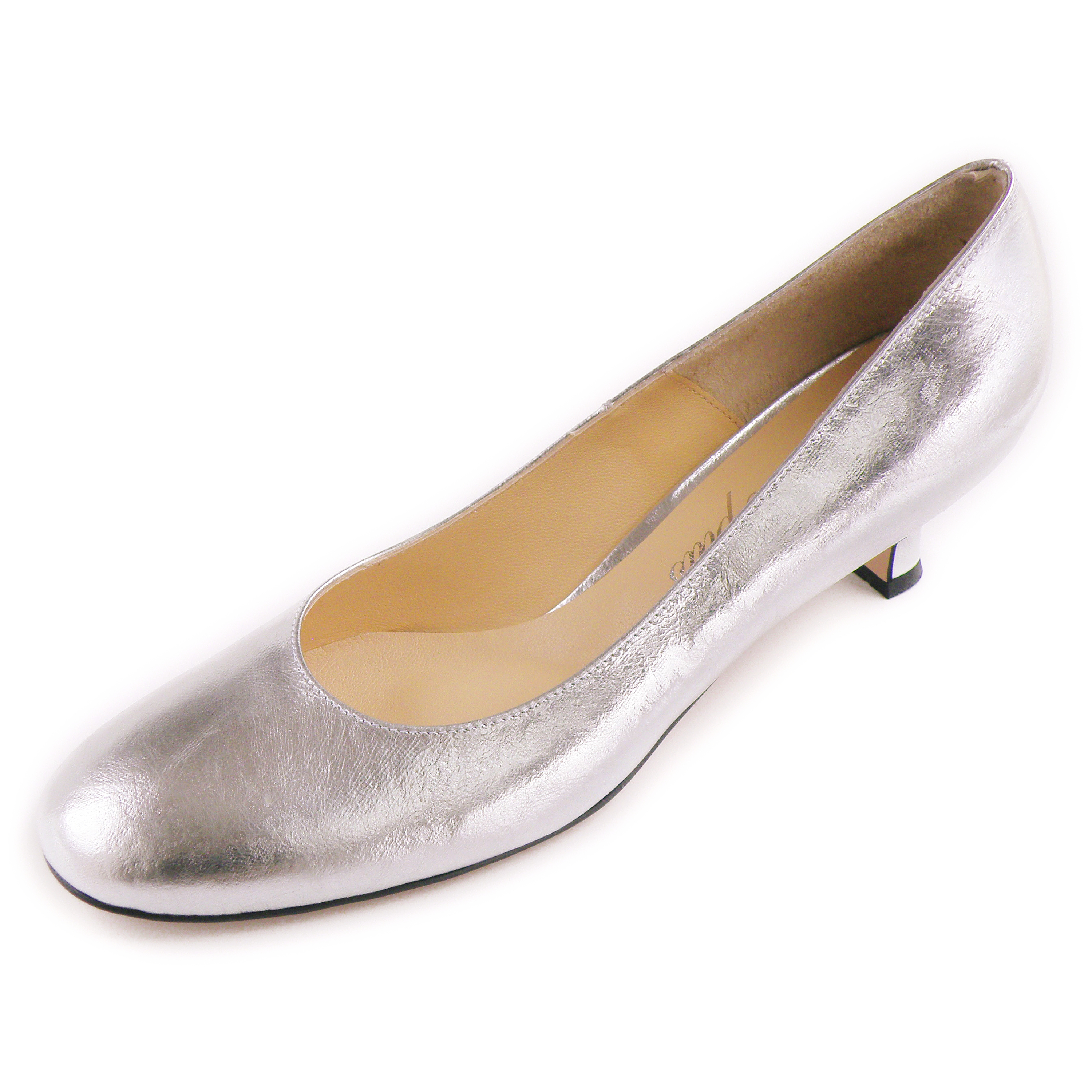 5cmヒールのシンプルな幅狭プレーンパンプスです。全体に柔らかな丸いシルエットで、歩きやすい高さでありながら優しくフェミニンな印象。幅はA、AA、AAAの3種類から選べます。木型はレインパンプスのLola、Ivyと同じ木型3です。