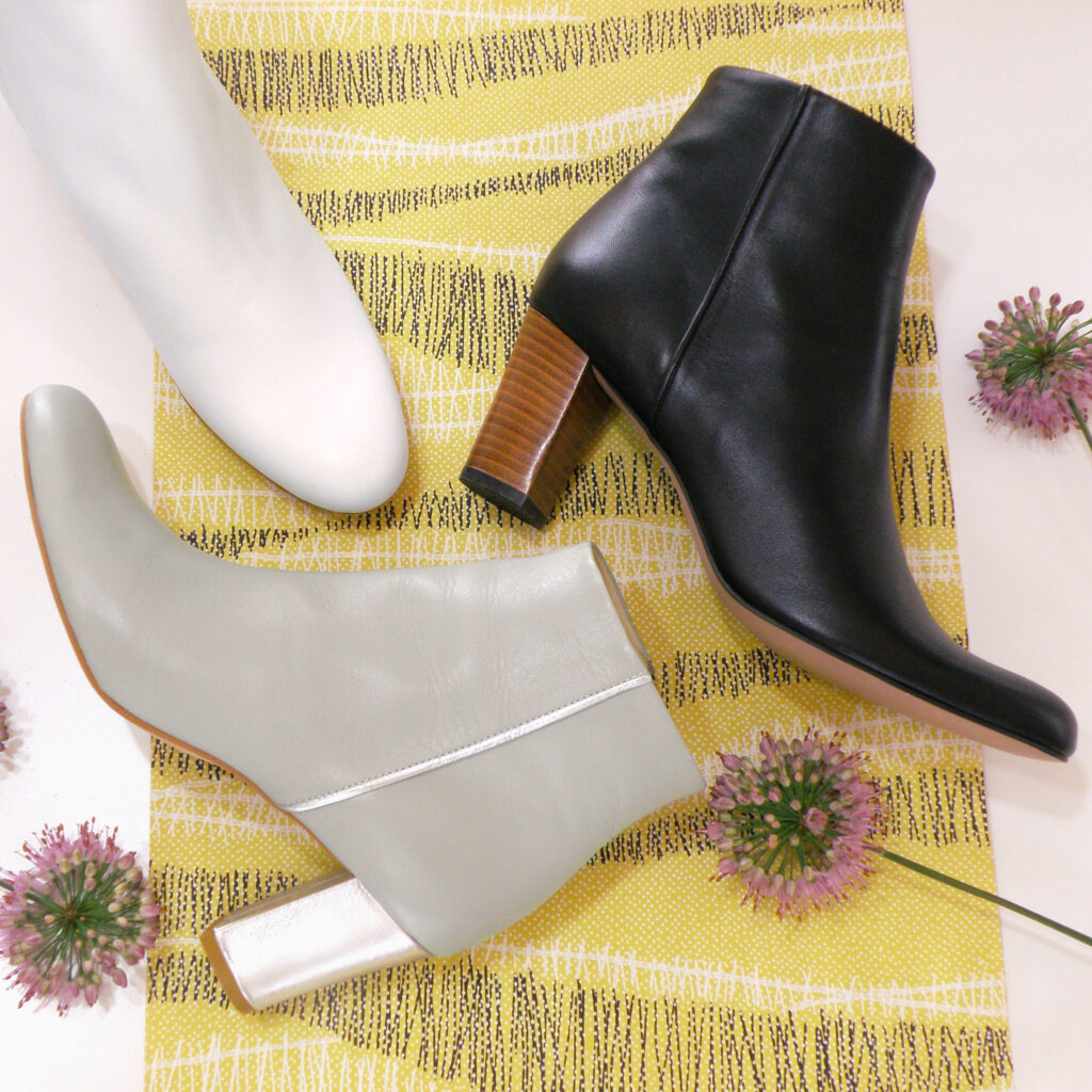 7cmヒールのモードな幅狭ショートブーツです。チャンキーヒールは安定感も抜群。一番冷える部分はカバーしつつひざ下を分断しない美脚ラインでオールシーズンお履きいただけます。木型はChloe、Flo、Daisy、Jadeと同じ木型6。アッパーはJadeと同じカットでヒールが太いタイプです。